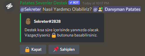 Support tickets are a system that allows members of the server to communicate directly with the desired authority through private rooms, maintaining their privacy, by pressing a button in the 📬│destek channel, rather than expressing their problems or questions in chat channels.