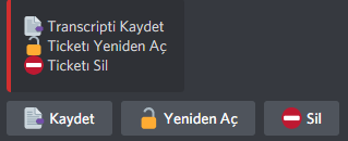 When the ticket is closed, the bot offers you 3 different options. You can choose the option you want by pressing its button.