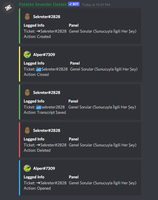 With the 📒destek_log channel, you can view every activity in the ticket system.